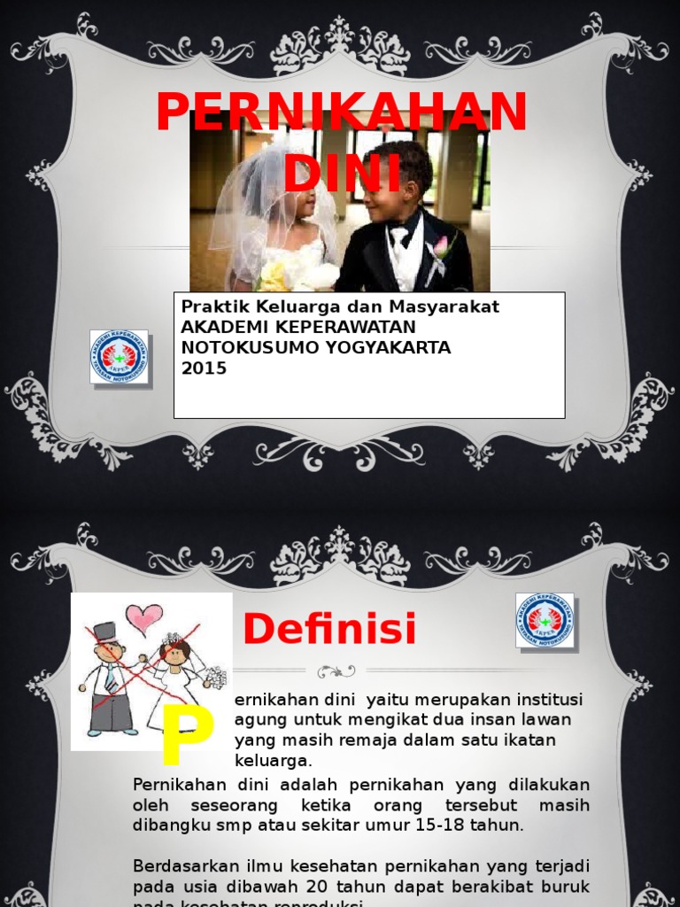 Kasus pernikahan usia dini banyak terjadi di berbagai penjuru dunia dengan berbagai masalah pernikahan usia dini ini merupakan kegagalan dalam perlindungan hak anak. Mandarin gaya eropa gereja rumput tema. 4 masa remaja juga merupakan masa yang. Kebiasaan menikah dini di masyakarat dan pandangan bahwa mereka mampu secara ekonomi mendorong pernikahan anak seperti yang terjadi di kabupaten tapin, kalimantan selatan, kata. Namun, upaya itu kurang bergaung di berbagai belahan.